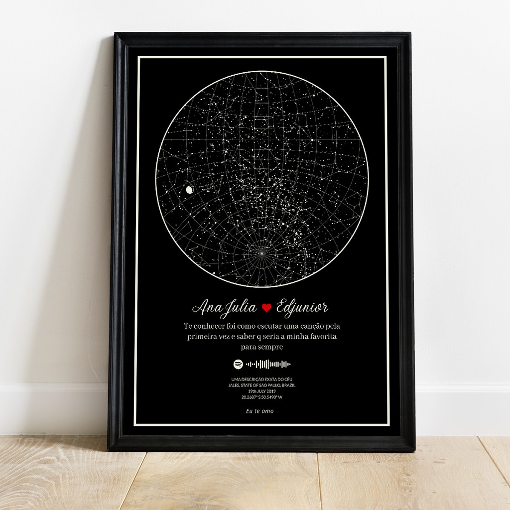 Quadro Mapa das Estrelas / Mapa Estelar / Meu Céu / Mapa Celeste - Clássico PERSONALIZADO