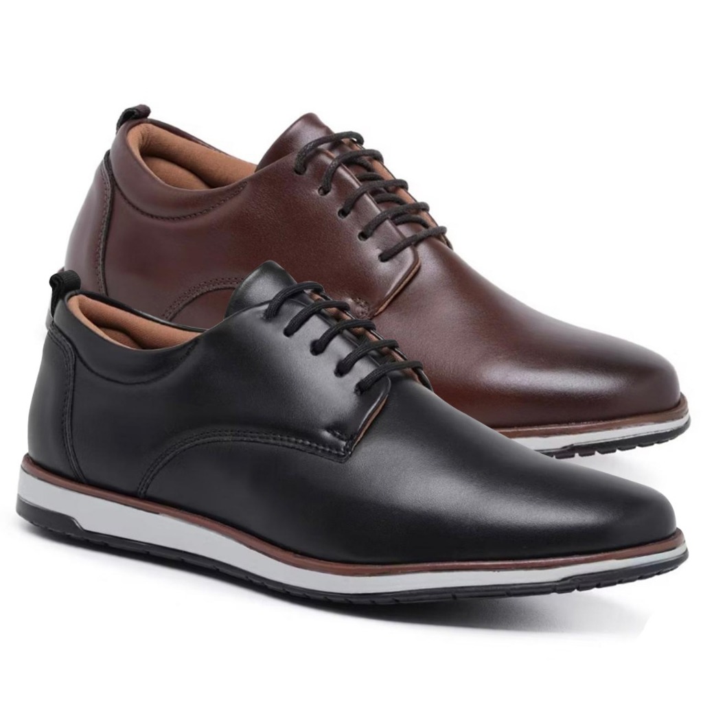 Kit 2 Pares de Sapato Masculino Oxford Social Derby de Couro Premium Confortável Preço Baixo Envio Já