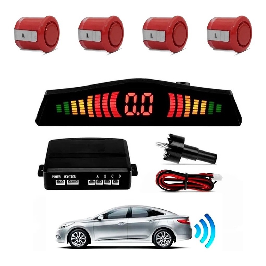 Sensor Re Estacionamento Vermelho 18mm Aviso Sonoro Display