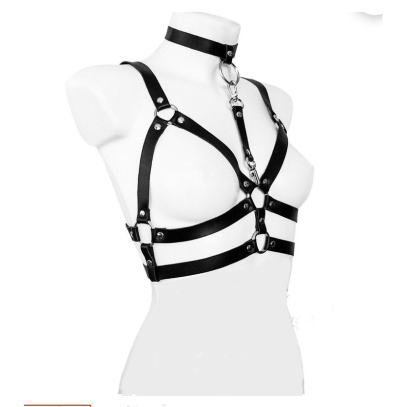 Harness BUSTO Cropped Sexy Arreio em couro sintetico Arnês Coleira