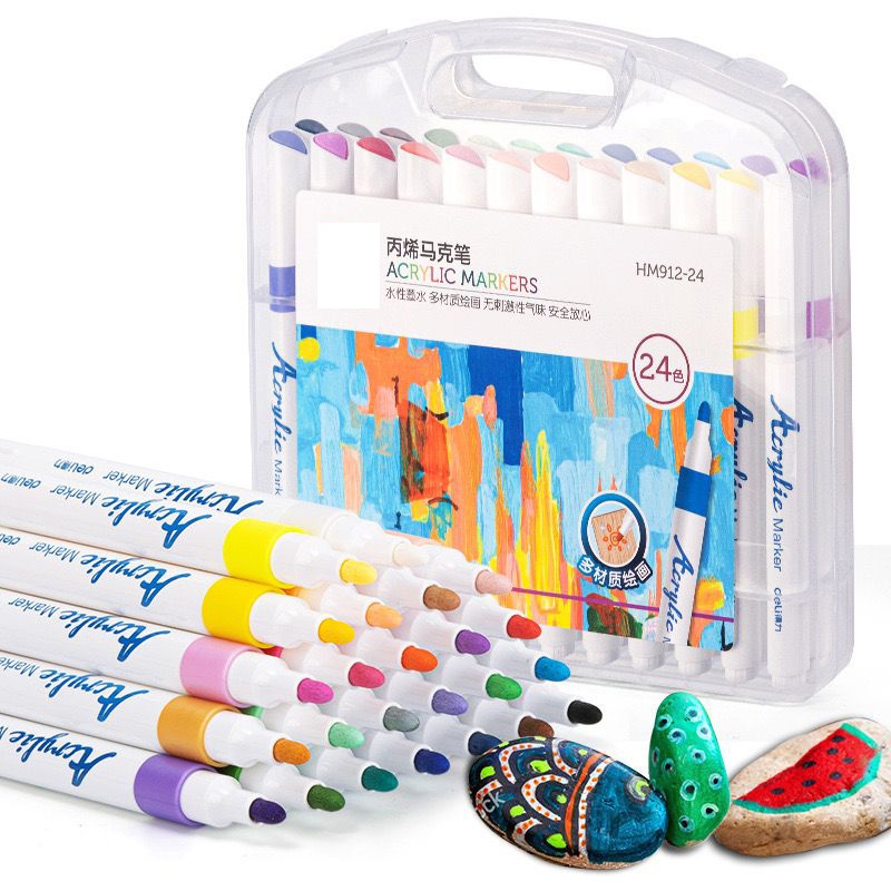 Kit 12/24/36/48/60 Caneta Marcadora Acrílica Líquida Direta, Pincel de Pintura, Pedra, Cerâmica, Glas, Madeira, Lona