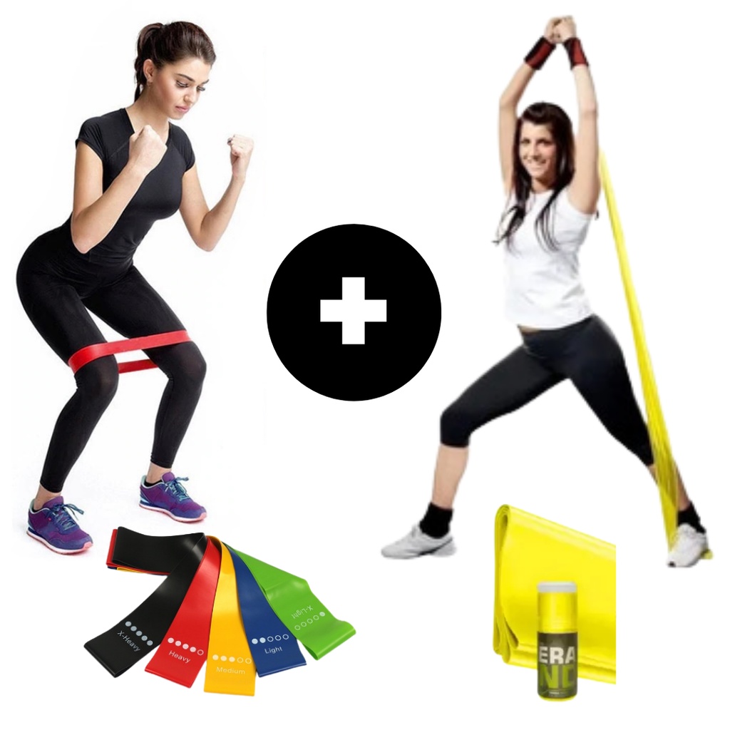Kit Fitness - 1 Faixa Elástica Fisioterapia Academia Thera Band Para Exercícios Multifuncionais 1,5 metro Espessura 0.35mm + 1 Mini Band Fita Elástica De Resistência Para Academia Exercícios Yoga Musculação e Fisioterapia