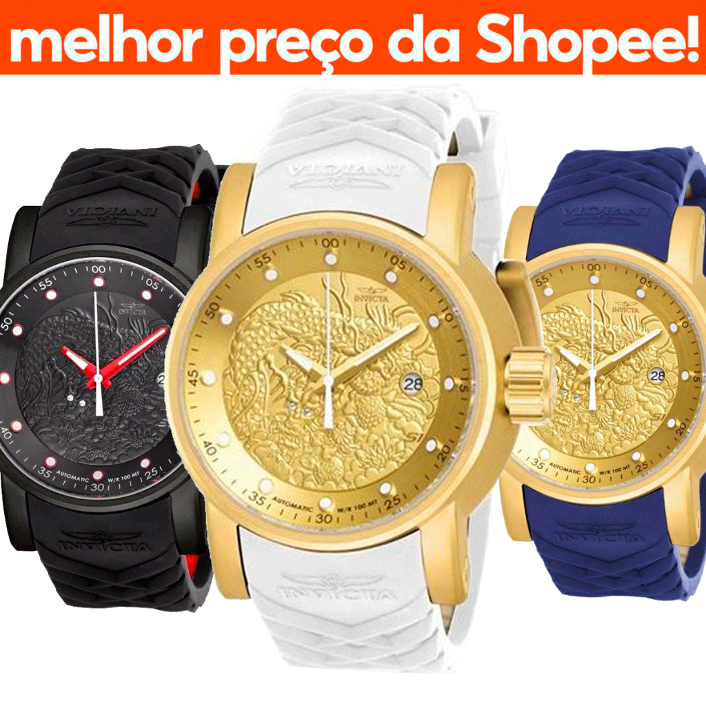 Relógio Masculino Invicta Yakuza S1 Dragão Pulseira Silicone Pesado Luxo