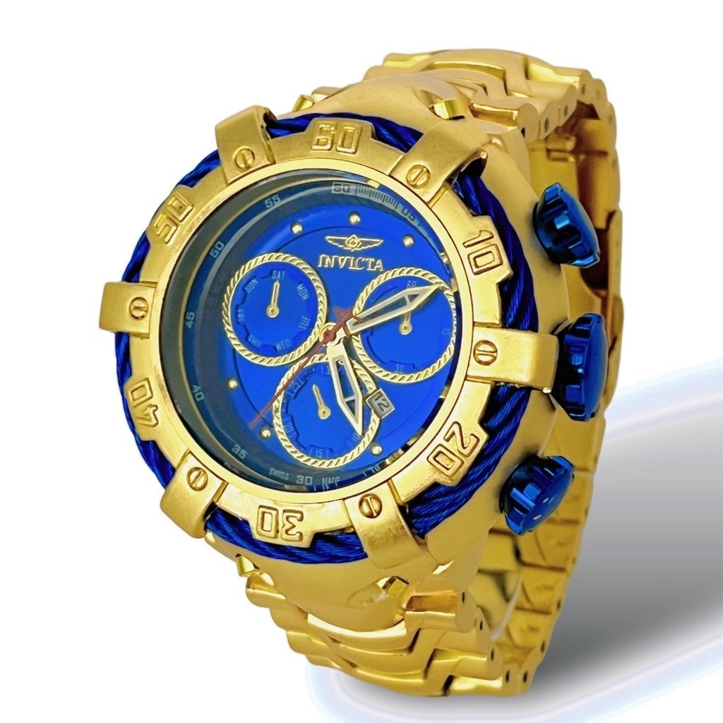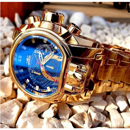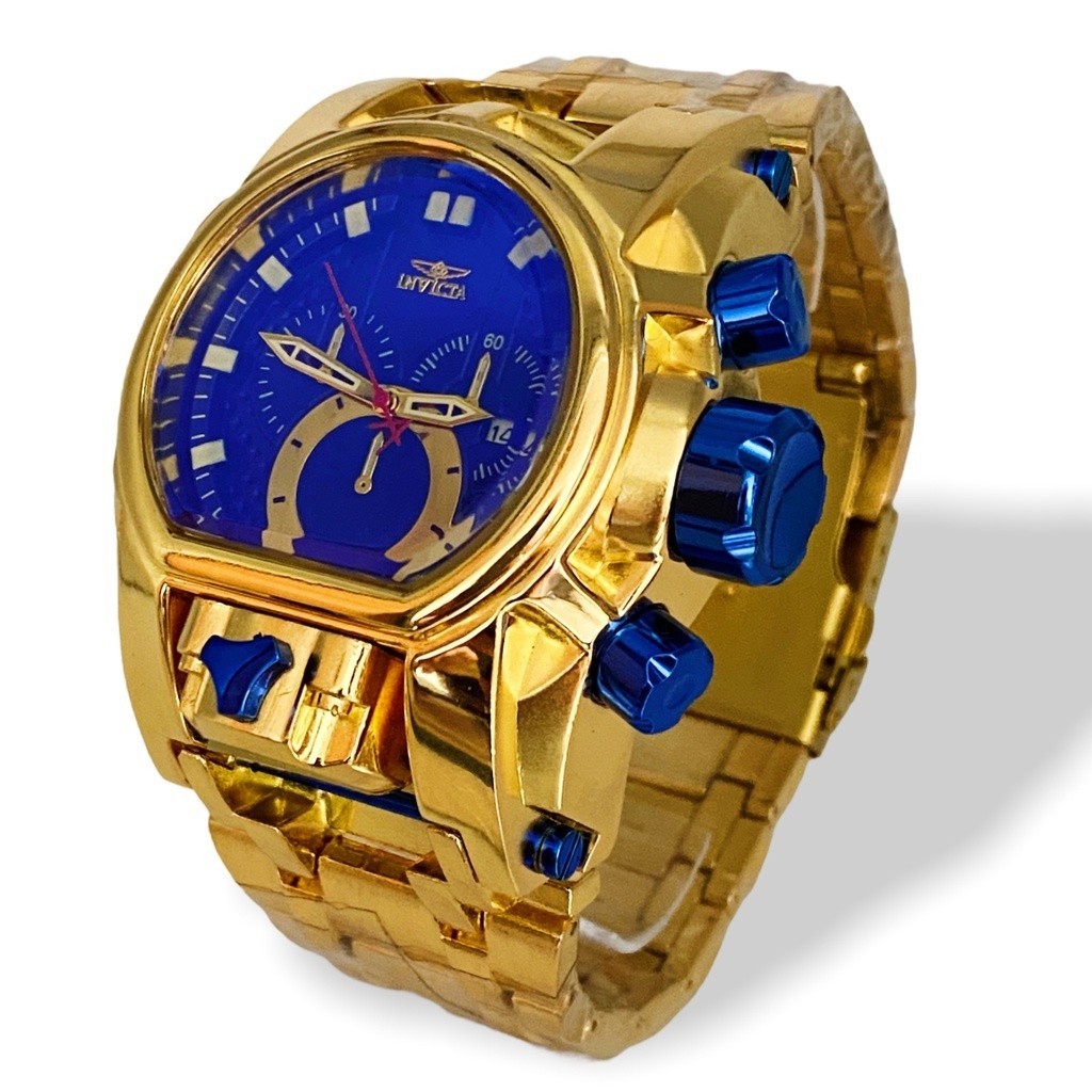 Relógio Invicta Masculino Zeus Magnum Aço Inoxidável Resistente á Água Grande Pesado + Caixa Dourado - Thunderbolt Bolt Zeus Skeleton Joker Hibryd Venon Excursion Reserve Prova D'água