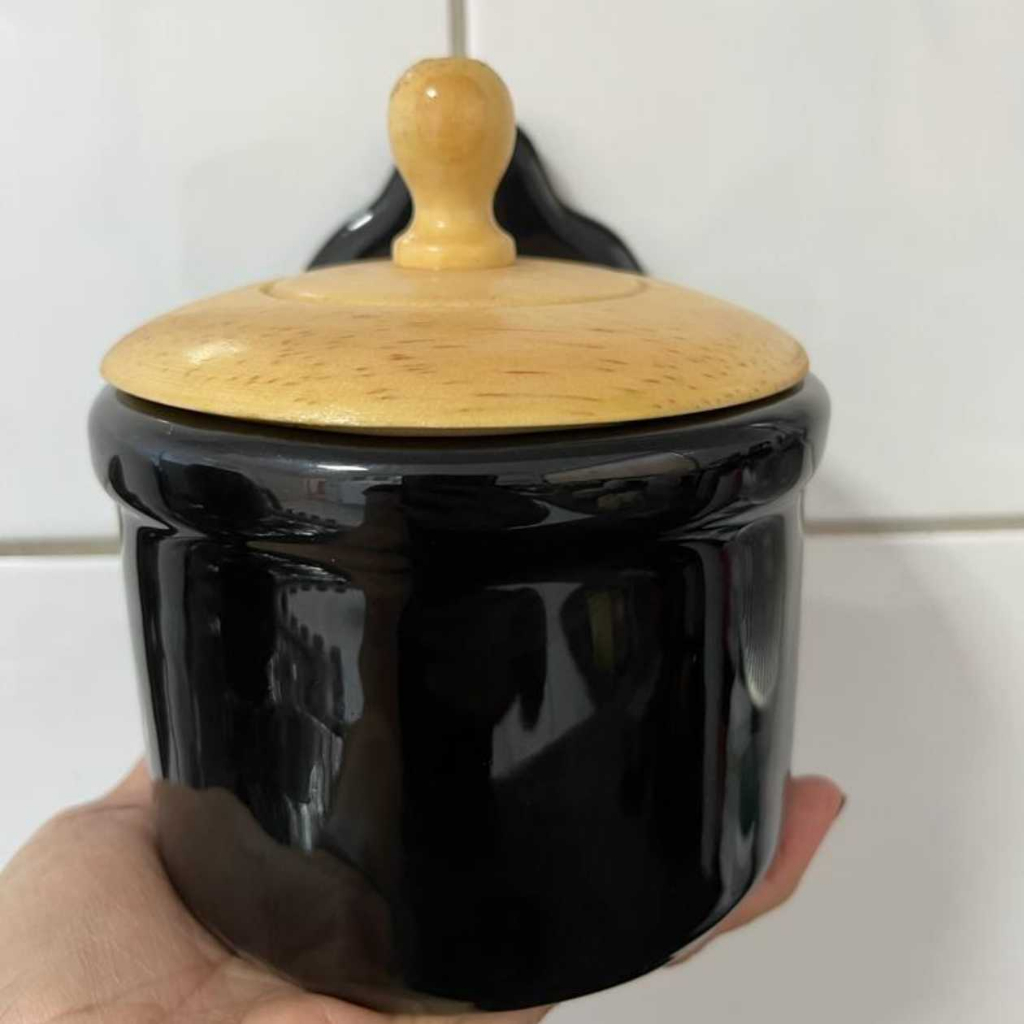 Saleiro em Cerâmica Para Parede Com tampa de Madeira