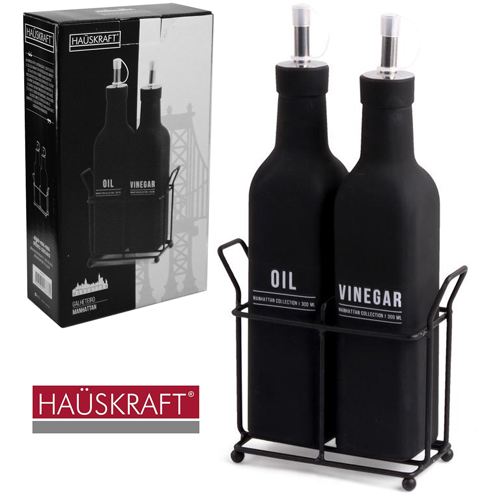 GALHETEIRO DE VIDRO 2 PECAS 300ML + SUPORTE ARAMADO BLACK