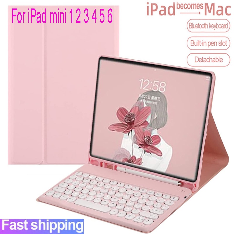 case with Keyboard for Apple ipad mini 1 2 3 4 5 6 Round cap button Wireless Bluetooth Keyboard Cover with Pencil Holder