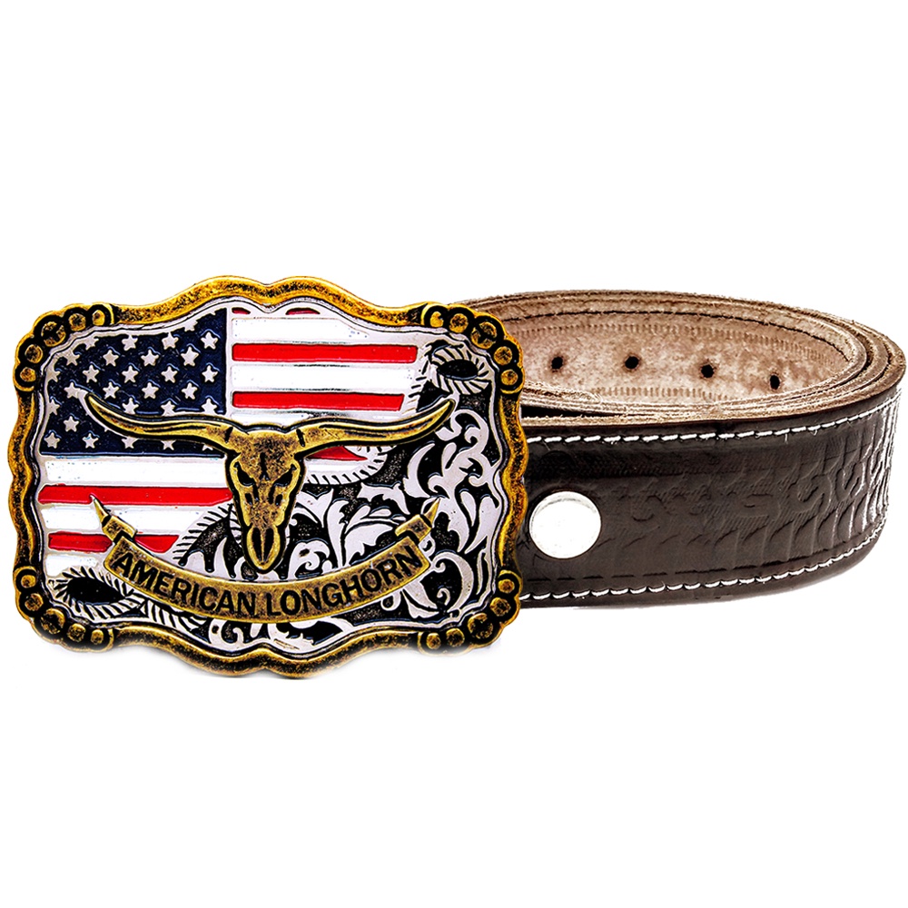 Cinto Country De Couro Legítimo Com Fivela EUA American longhorn CV
