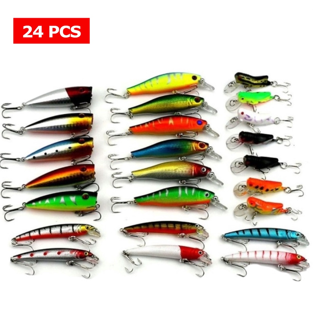 Kit Com 24 Iscas Artificiais Importadas De 1/2 Meia Água E Superfície De 4 a 8 cms De 4g a 10g Para Tucunaré Traíra Robalo Dourado
