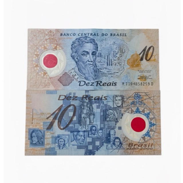 Cédula Comemorativa de 10 Reais de Plástico MBC (Polímero) 2001 (Pedro Álvares Cabral por extenso). Nota de Coleção Difícil.