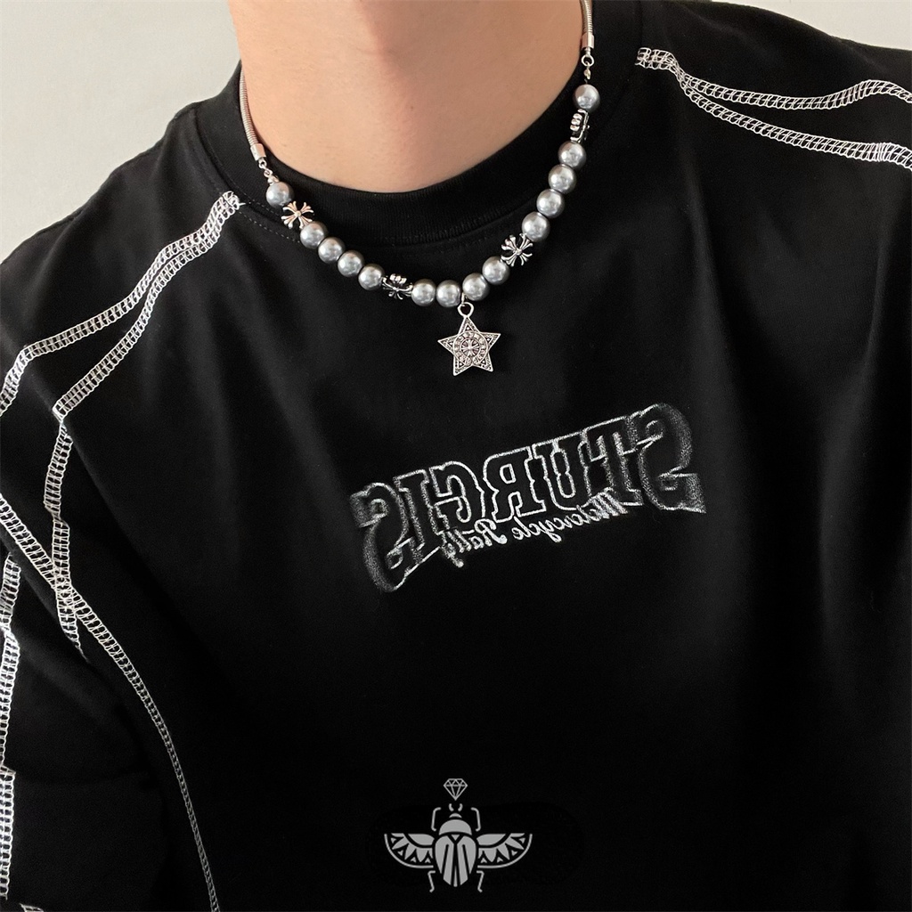 Desenho De Retalhos De Pérolas Estrela Para Colares Masculinos , Pulseiras Estilo Feminino cool , Camisolas De hip-hop high-end , Correntes De Capuz , Novos Estilos