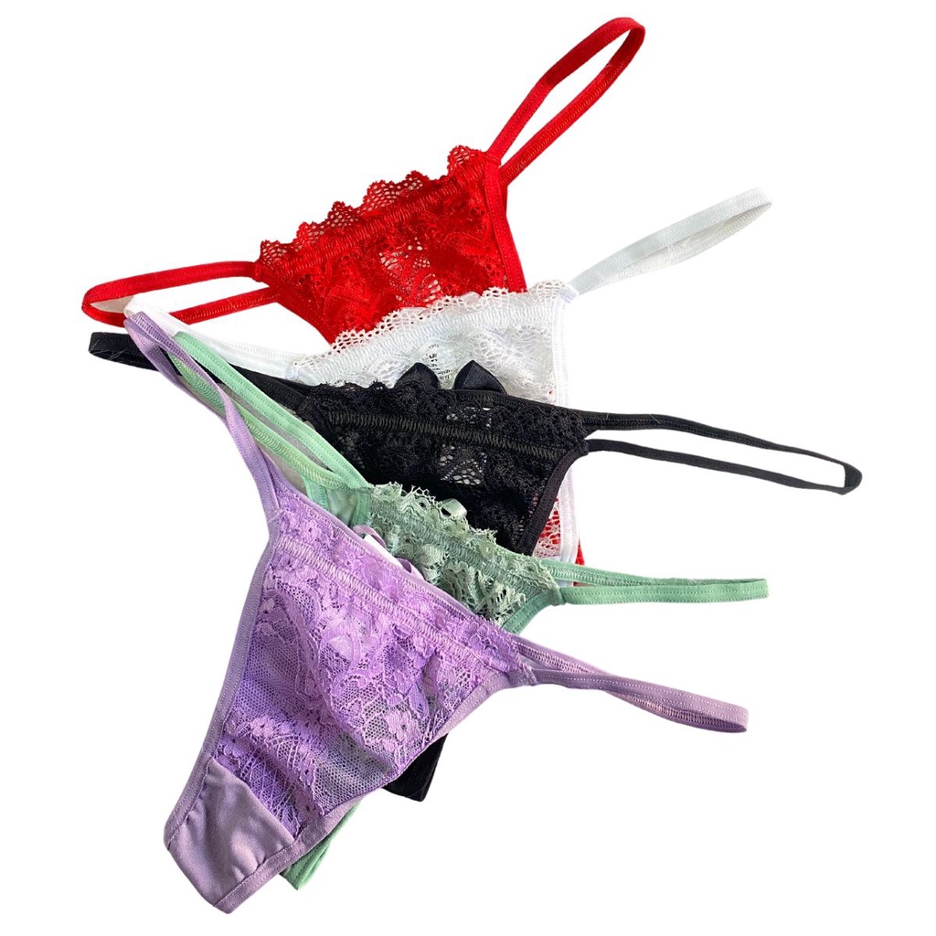 Kit com 5 Calcinhas em Renda Fio Dental Sexy Lingerie Feminina Sensual Moda Intima Revenda no Atacado
