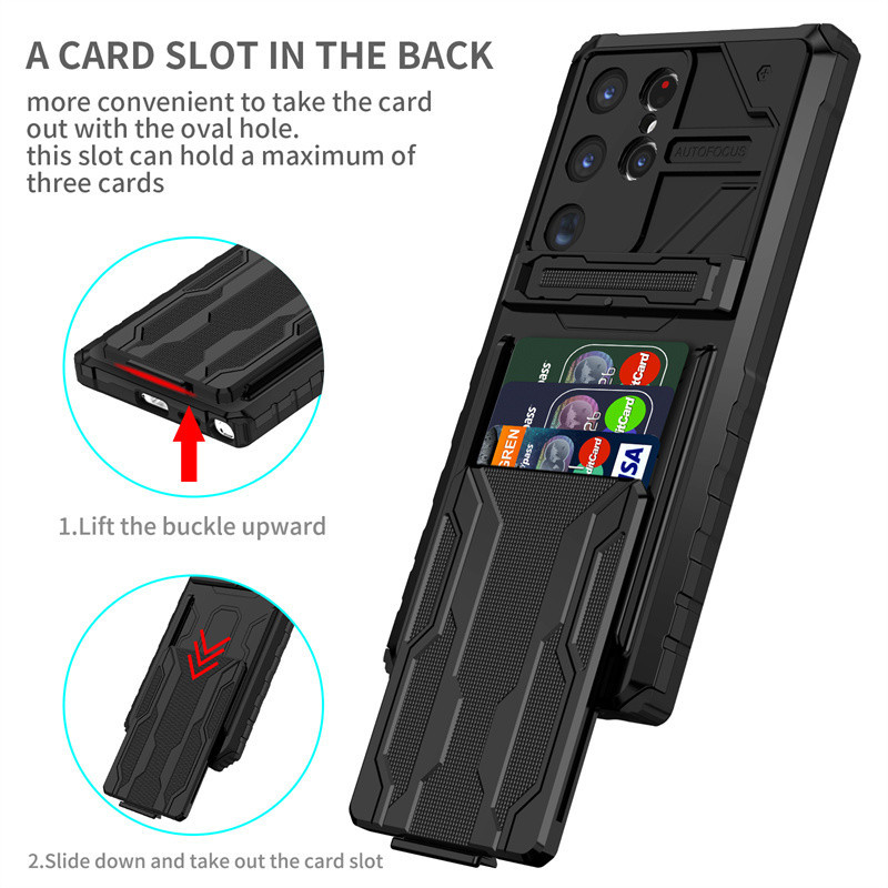 Caixa Para Telefone Com Porta-Cartões Armor Slide card Slots Holder Samsung Galaxy S23 S22 S21 Ultra S20 FE Nota 20 Flip Inserir Cartão 2 Em 1 anti-Queda De Concha Dura