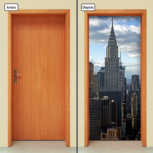 Adesivo Decorativo de Porta Parede Vidro Sala Cozinha Banheiro Casa Decoração Ponto Turístico Mundo Nova Iorque New York Nova York Cidade Ponte Do Brooklyn Empire State Building Estátua da Liberdade Dólar