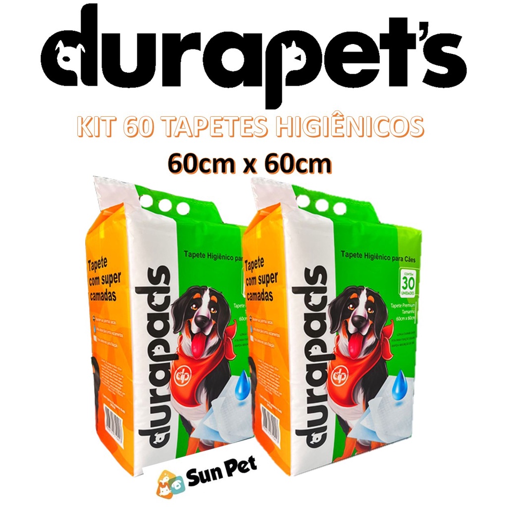 Kit 2 Tapete Higiênico Para Cães Durapads Pet 30UN 60x60 cm Total 60 Unidades para Cães