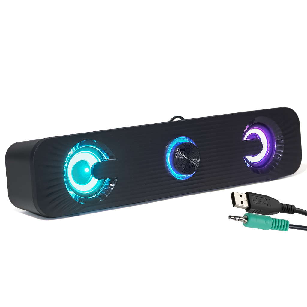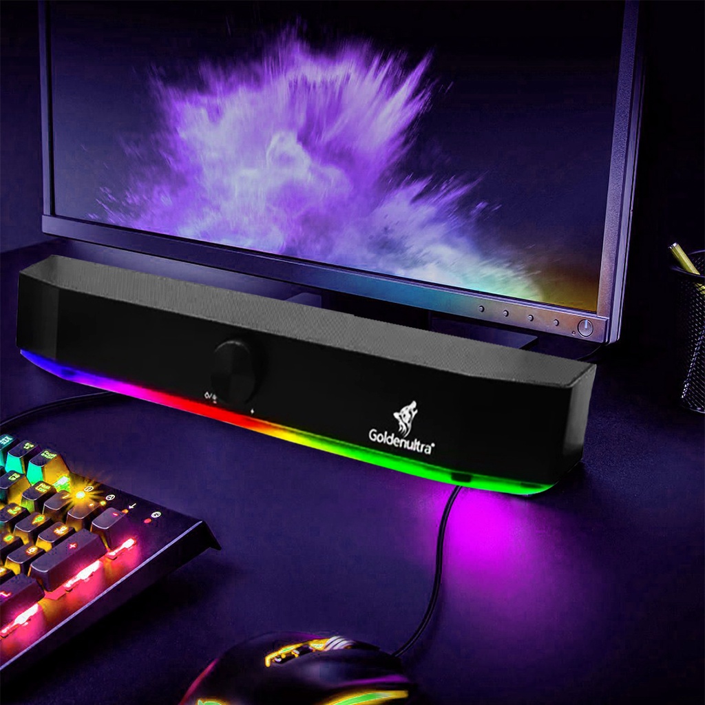 Caixa de Som Gamer Soundbar 6W Rms Real Speaker Estéreo Iluminação Led Rgb Conector P2 Usb Pc Computador Notebook Mac Celular Tv Smart