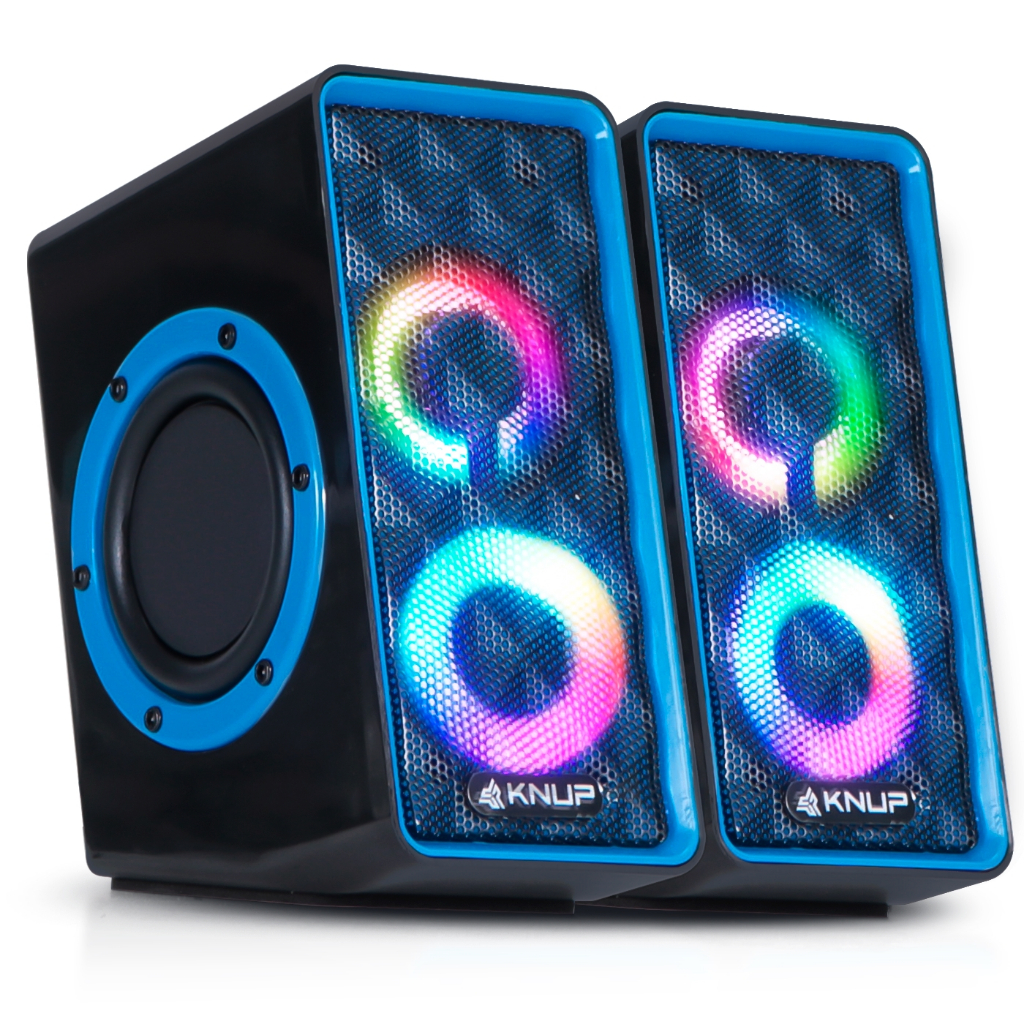 Caixa de Som Gamer Subwoofer 6W Rms Real Speaker 2 Alto Falante Estéreo Iluminação Led Rgb Conector P2 Usb Pc Computador Notebook Mac Smart Tv Celular