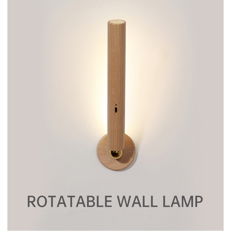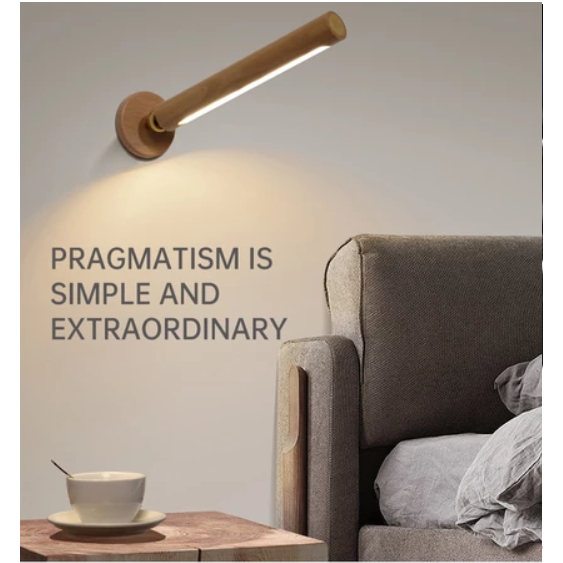 Lâmpada De Parede De Quarto De Madeira LED , USB Recarregável Mesa De Cabeceira , Luz Giratória De Atração Magnética