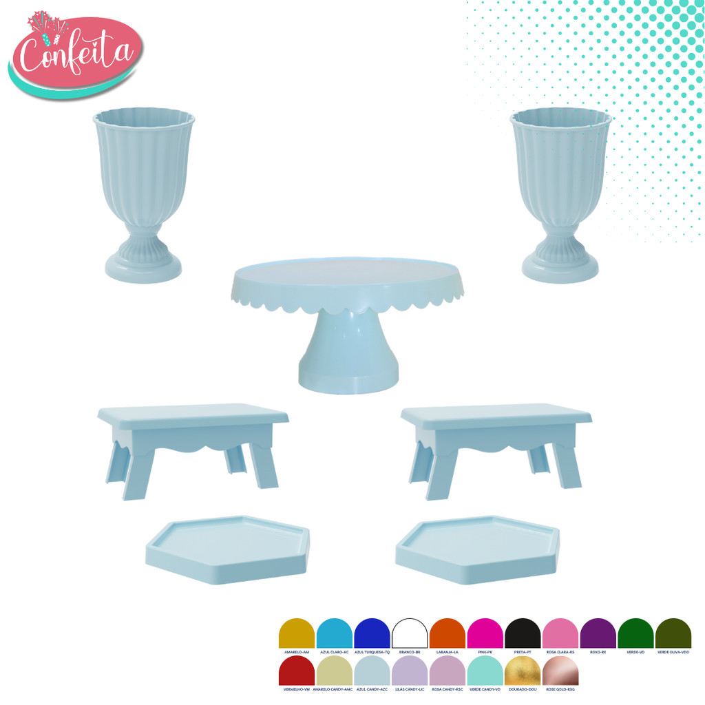 Kit Festa 7 Peças Completo Colorido Boleiras Vasos Bandejas Para Decoração De Festa e Mesa de Doces