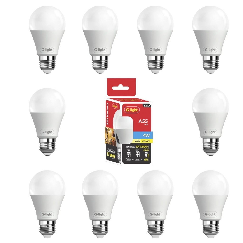 Kit 10 Lâmpadas LED Bulbo 4W 3000K 6500K - G-Light
