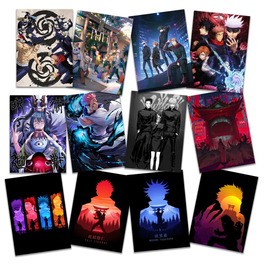 Kit 5 Quadros Decorativos 9,5X14,5 Jujutsu Kaisen Anime Placa Satoru Gojo Sukuna Itadori Megumi Nobara Mei Mei Maki Suguro Geto Coleção Exclusiva Já Acompanha Dupla Face