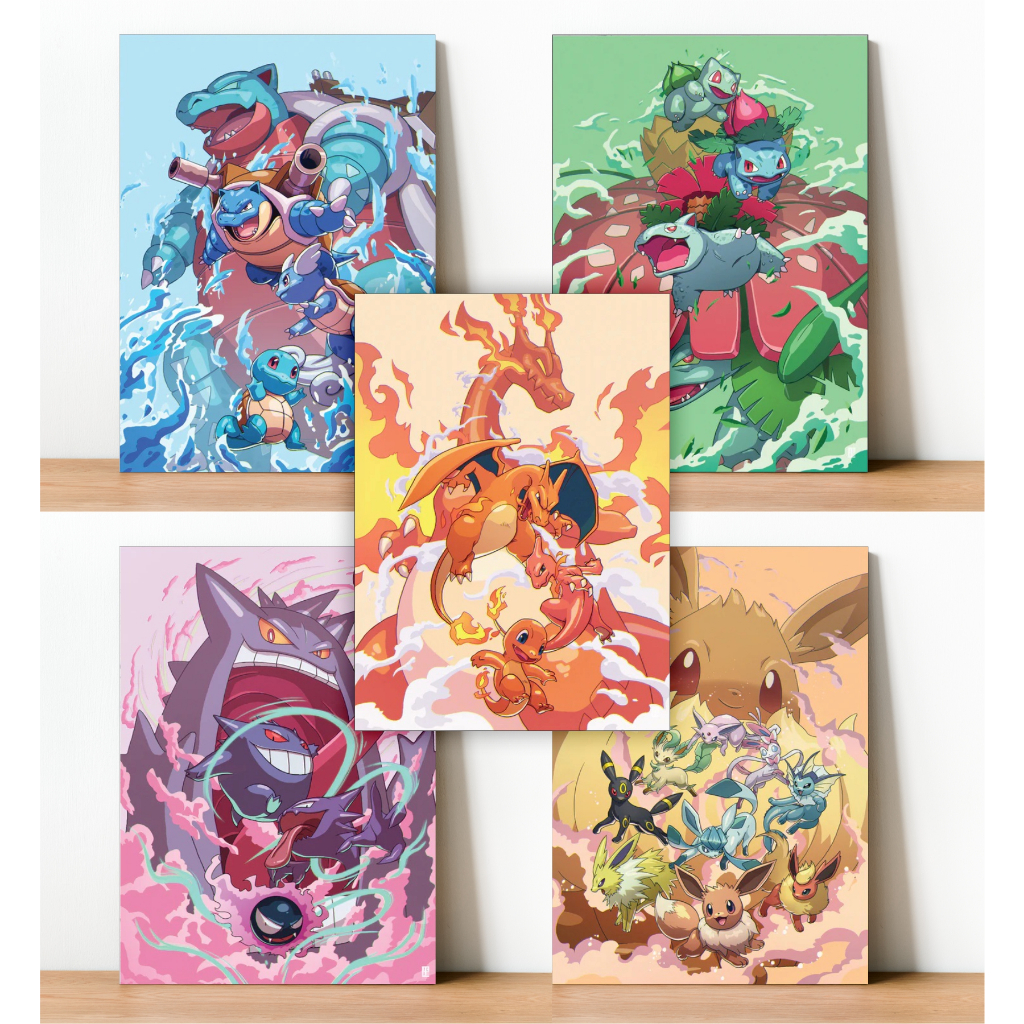 Kit 5 Quadros Decorativos 9,5X14,5 Pokemon Anime Placa Decorativa Pikachu Gengar Eevee Greninja Charizard Mewtwo Lugia Ho-oh Pokémon Coleção Exclusiva Já Acompanha Dupla Face