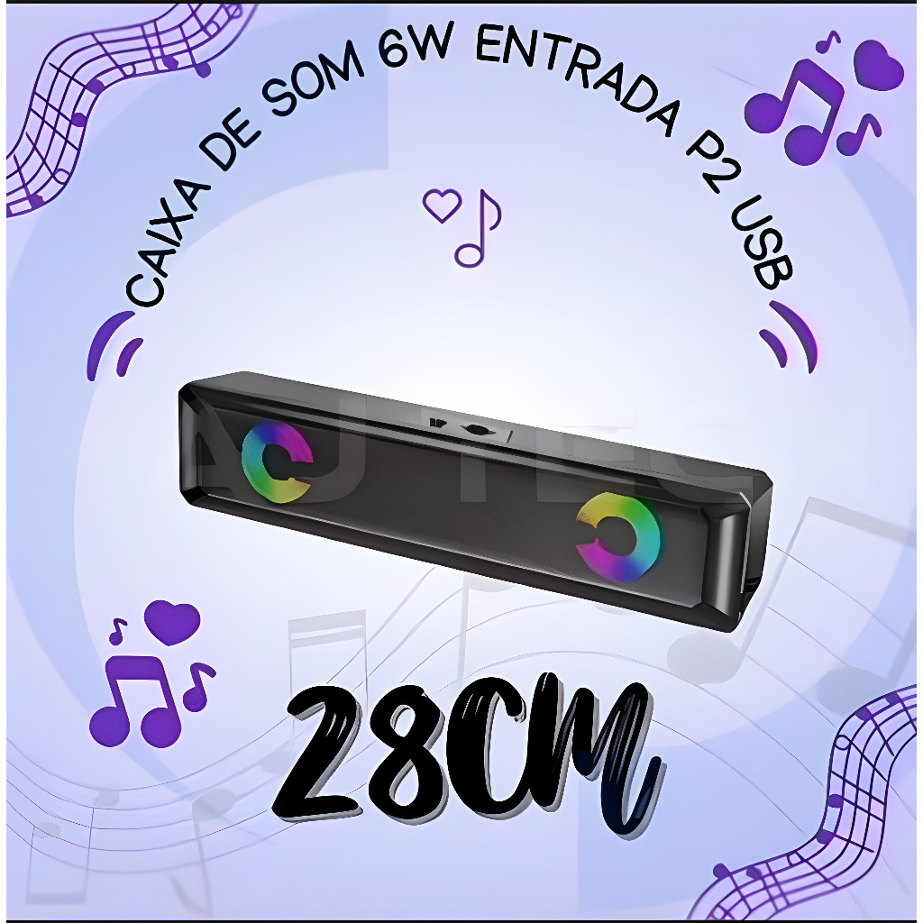Caixa de Som Gamer Soundbar Alta Iluminação Led Rgb para Computador Pc Notebook Tv Usb P2