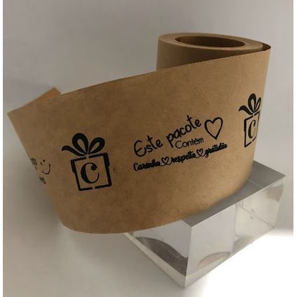 50 metros - Fita Gomada Personalizada - Largura de 60mm - Cor Papel Kraft - Impressão Preta