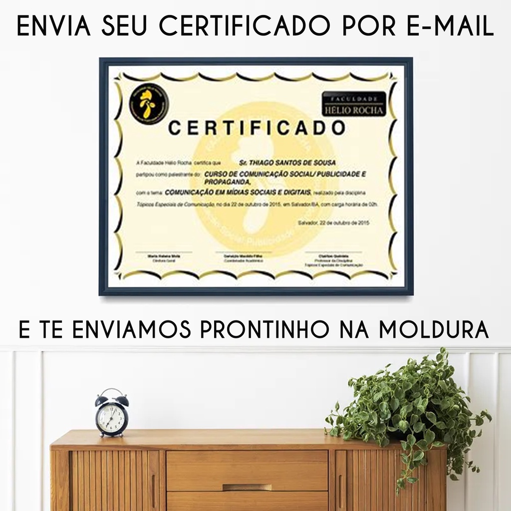 Impressão do Certificado + Moldura (A4) Certificado na MOLDURA Emolduramos o Seu Certificado