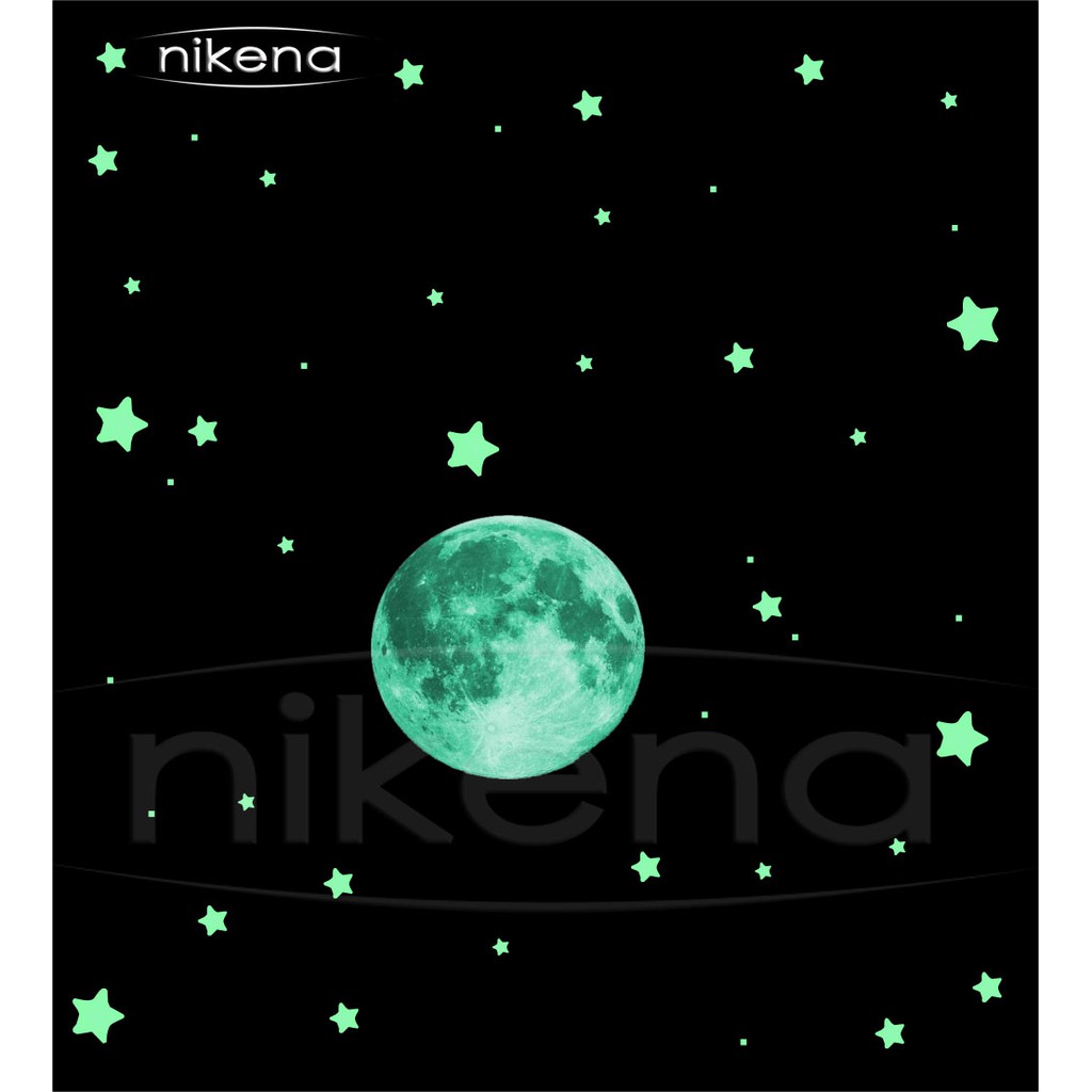 Kit 453 Adesivos - SUPER Lua 12 cm + 452 Estrelas com Quadradinhos - Adesivo Brilha no Escuro - Fluorescente Teto - Noite de Lua Estrelada - AD453120