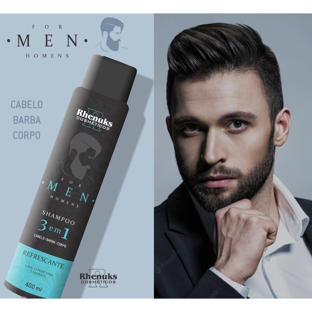 Shampoo for men 3 em 1 lava condiciona e hidrata cabelo barba e corpo rhenuks 400 ml