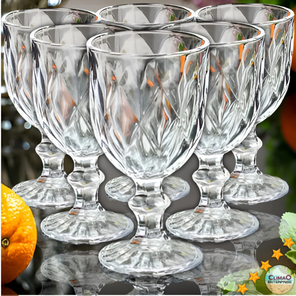 Kit Conjunto 6 Taças Diamond De Vidro de Agua Vinho Diamante Buffet Restaurante Luxo 330ml