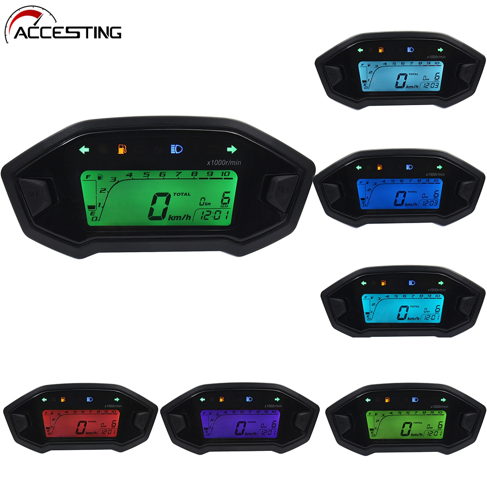 100000rpm Led Velocímetro Ajustável Universal De Motocicleta 7 Cores Backlight Odômetro Digital Tacômetro 12V Para 1,2,4 Cilindro