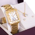 Relógio Champion Feminino Dourado Prova d'água com 1 ano de garantia e colar e brincos