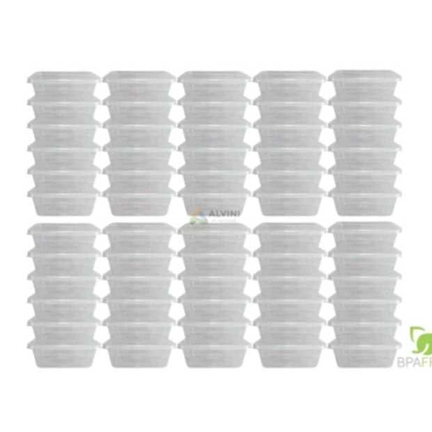 Pote Retangular 500ml BPA Free Kit com ate 100 Unidades Transparente