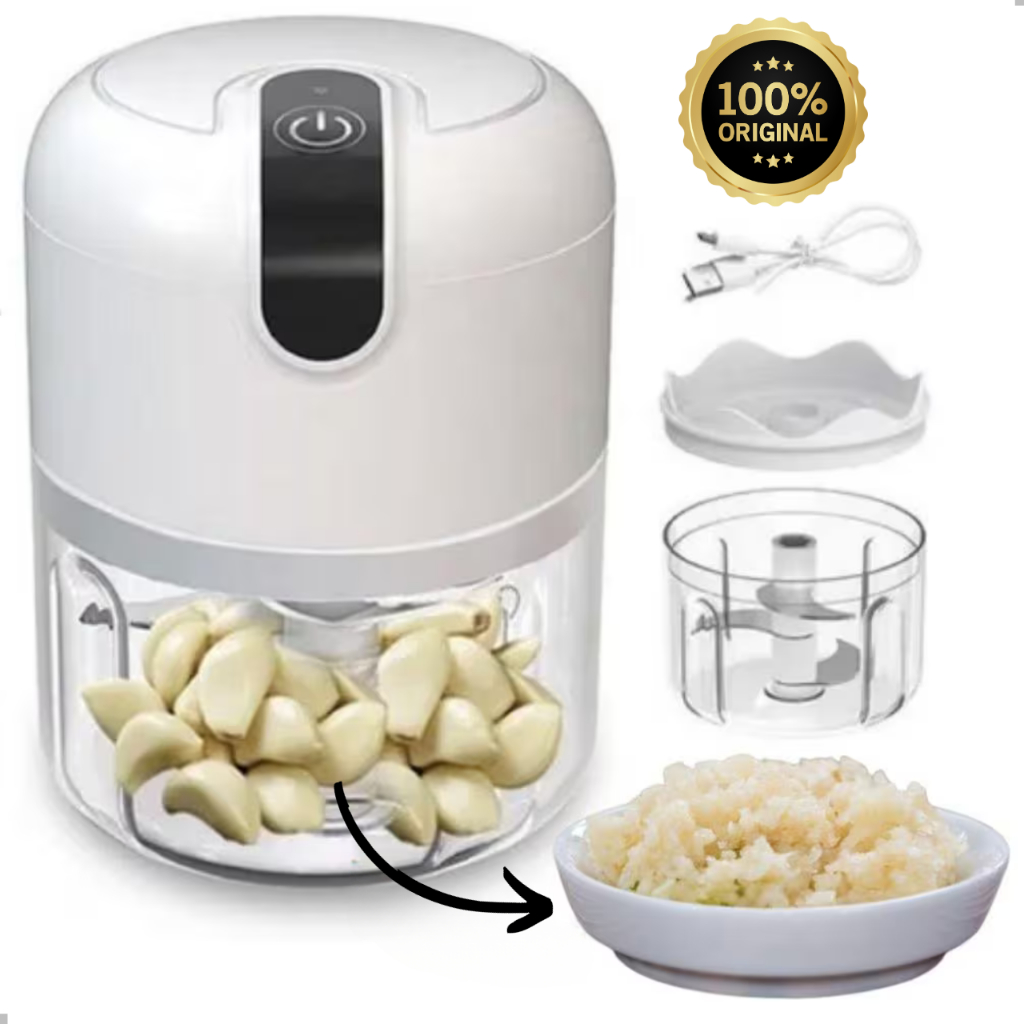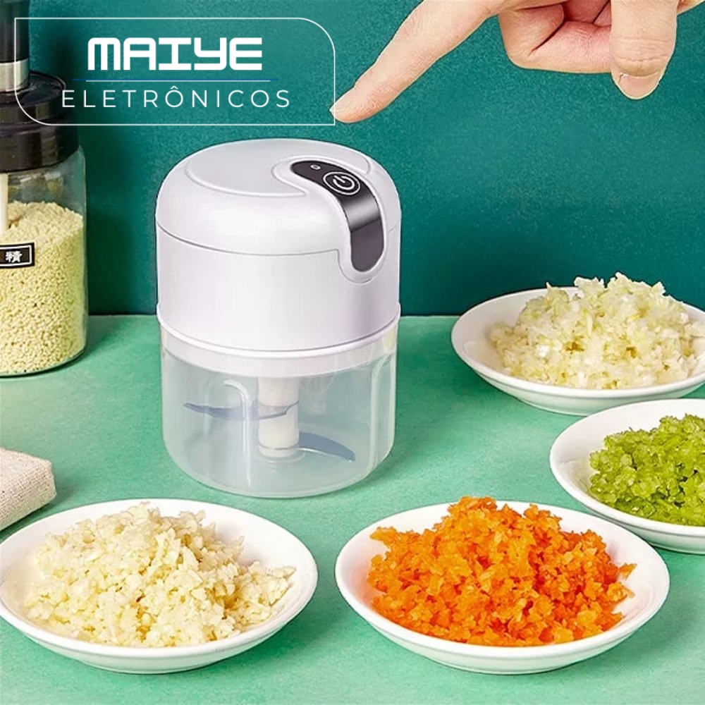 Mini Processador Elétrico de Alimentos Portátil com 3 lâminas de aço inox USB 250 ml Bivolt