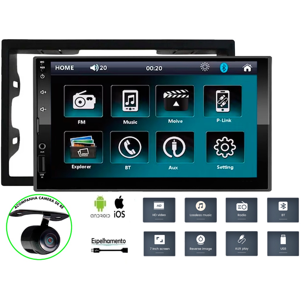 Kit Central Multimídia + Câmera de Ré Chevrolet Corsa Classic 2012 2013 2014 2015 2016 Bluetooth Espelhamento USB Touch 2 Din MP5 SD 7 Polegadas