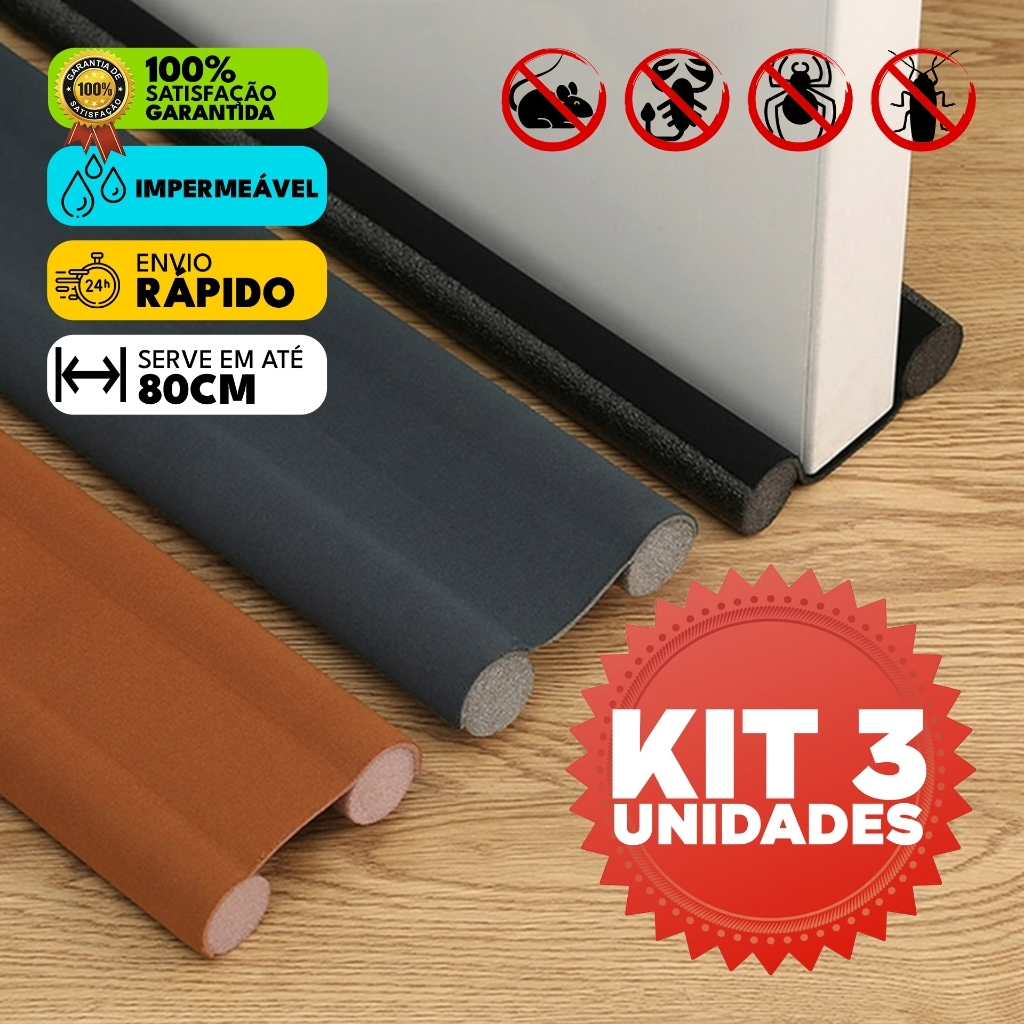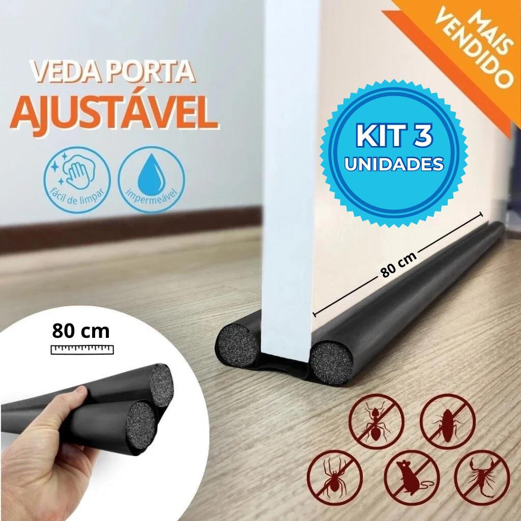 Kit 3 Veda Porta AJUSTÁVEL Proteção Protetor de Porta Impermeável Rolinho Duplo 80cm Comprimento