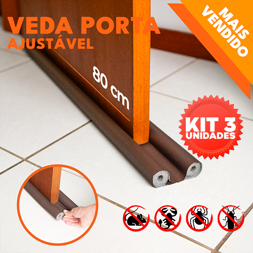Kit 3 Veda Porta Ajustável Protetor de Porta Rolinho Duplo 80cm