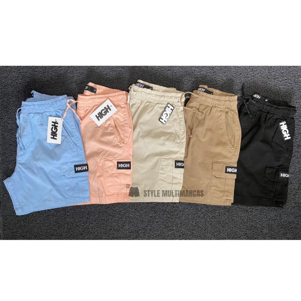 Bermuda Cargo Sarja Brim Masculina 6 Bolsos Estilo Sacola Short Masculino Bermuda Tática Militar Bolso Diferente