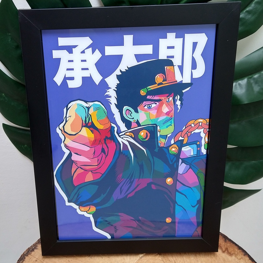 Quadro decorativo com moldura e vidro JoJo's Bizarre Adventure Joseph Joelstar anime pôster geek