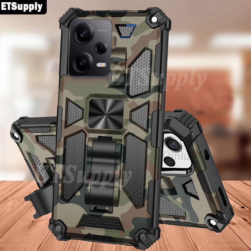 Capa De Telefone Para Xiaomi Poco X5 Pro Tampa Traseira Protetora Anti-Queda Camuflagem Com Suporte Mi