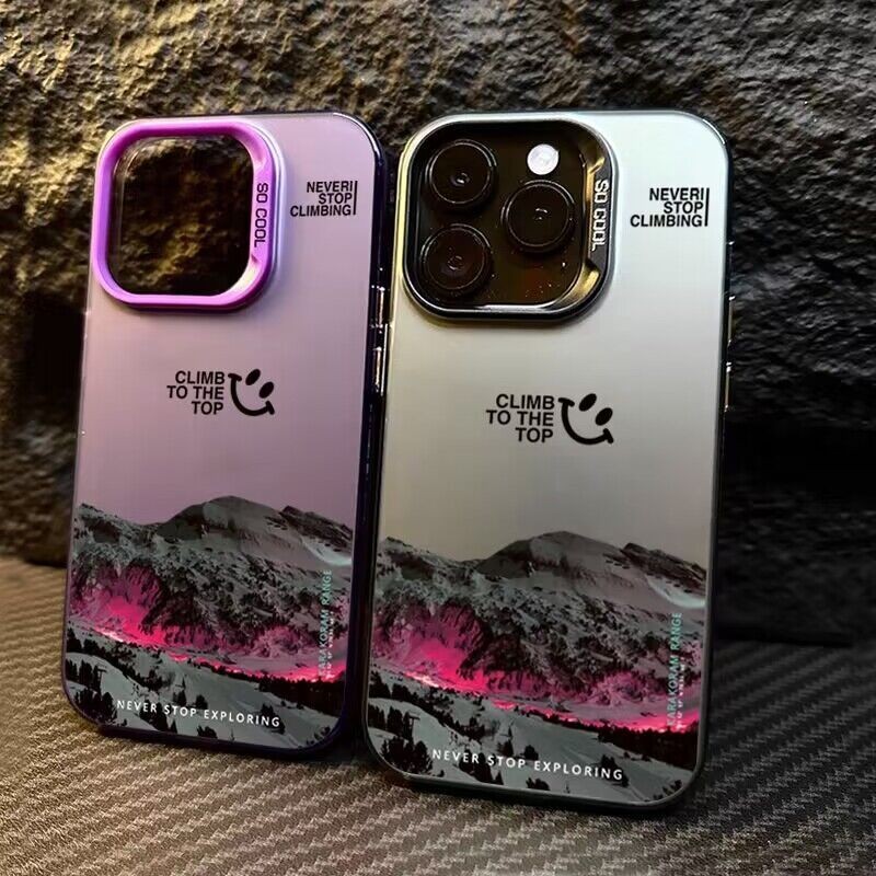 Capa Anti-Queda Padrão Snow Mountain Silver Púrpura Para iPhone 15 Pro Max 15 14 13 12 11 XR XS 7 8 Plus SE 2020 Moda Marcas IMD Logotipo