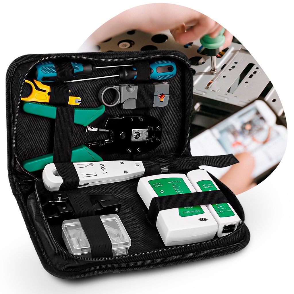 Kit Ferramentas Para Técnico de Rede Informática + Testador Cabo Rede Lan Ethernet