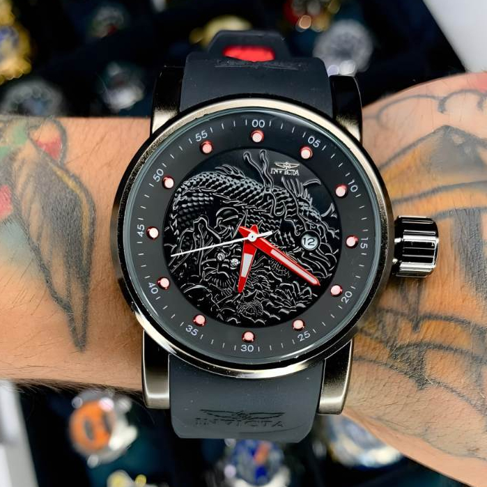 Relógio Masculino Invicta Yakuza S1 Dragão Pulseira Silicone Pesado Luxo