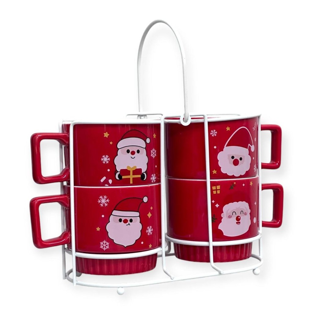 Cj 4 Canecas em Cerâmica C/ Suporte de ferro Noel - Vencedor