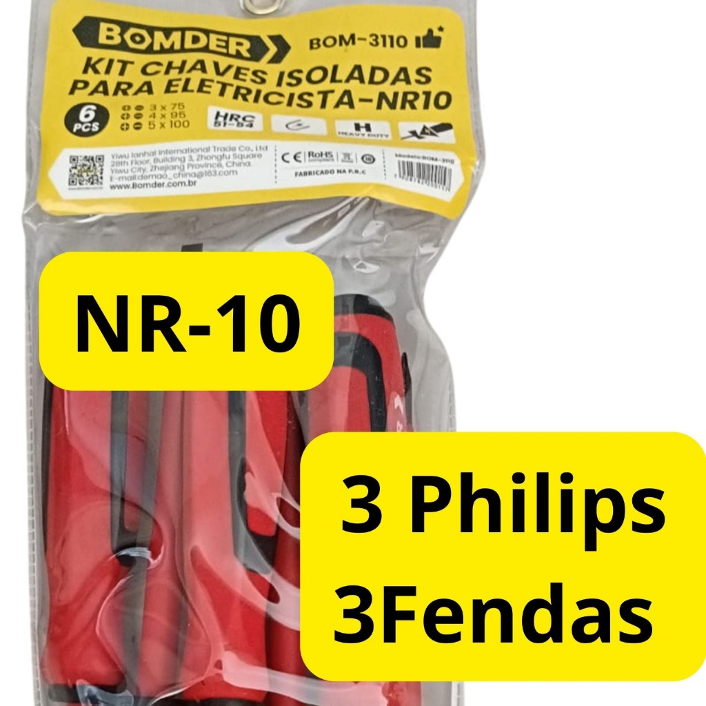 Jogo De Chaves De Fenda Philips Isolada 1000V Eletricista kit com 6 Peças