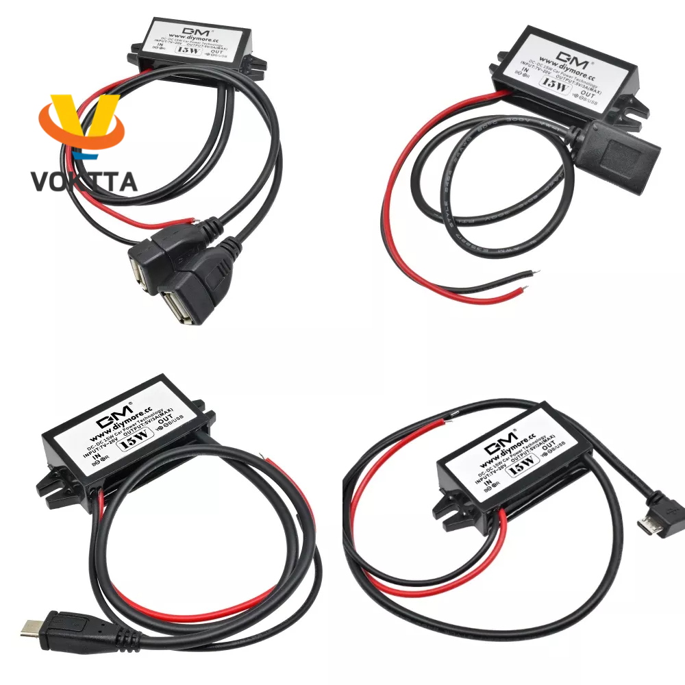 VOKTTA 12V A 5V 3A 15W DC-Módulo De Alimentação Do Conversor De Corda Para Carro Adaptador USB Fêmea Mini Micro