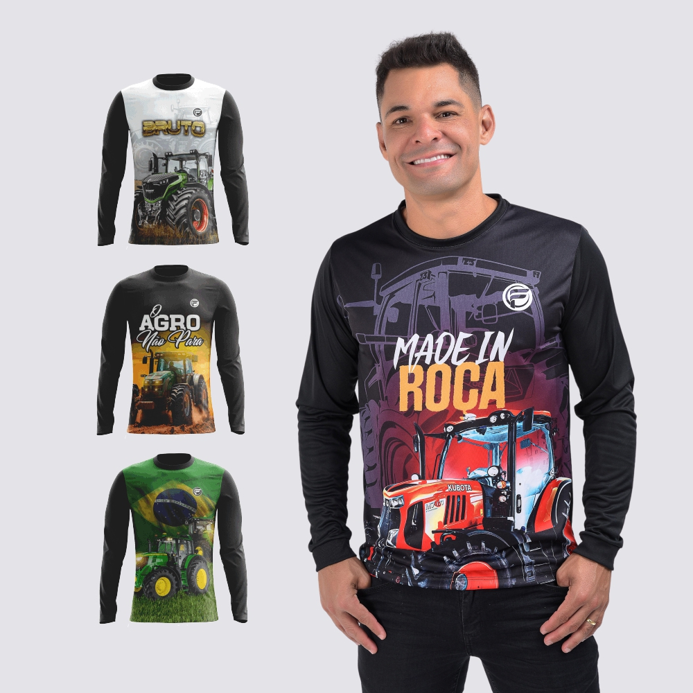 Camisa Camiseta do Agro Masculina Proteção Solar UV Agropecuária Fazenda Bruto Trator Agricultura Brasil Blusa Manga Longa Gola Redonda