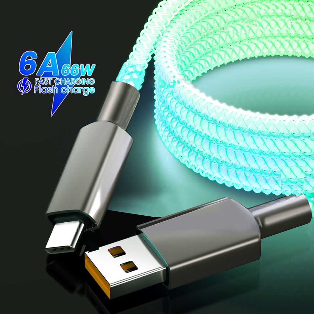 Cabo RGB Para iPhone Android Tipo C Linha De Carregamento Rápido 6A 66W Fio Brilhante De Streamer Colorido De Dados Do Carregador USB